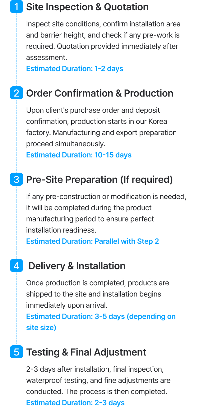 We provide a complete one-stop service — from manufacturing and supply to on-site installation.